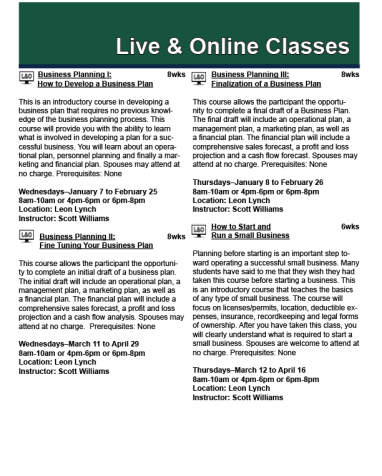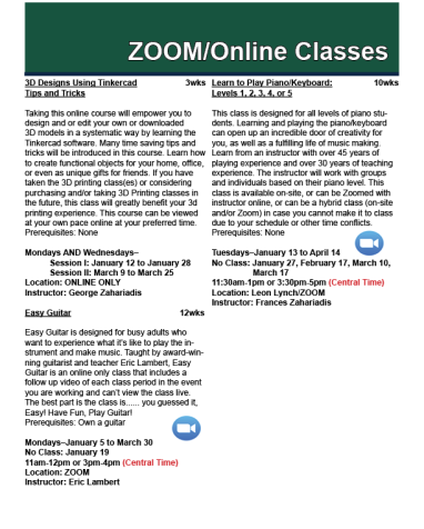 Live and Online Classes Spring 2023